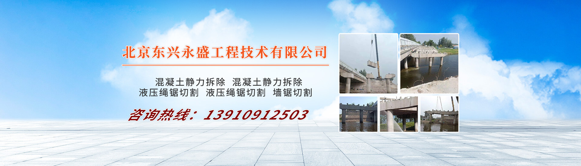 北京東興永盛工程技術有限公司承接各類混凝土切割拆除破碎、橋梁切割拆除、橋梁支座更換、橋梁同步頂升、墻鋸切割、繩鋸切割、靜力切割、靜力拆除、鋼筋混凝土切割、拆除加固、混凝土切割施工隊、靜力拆除、保護性拆除、水鉆排孔、靜力、墻體切割、混凝土切割報價、建筑改造加固、結構改造、橋梁拆除、橋梁切割拆除、橋梁保護性拆除、橋梁改造加固、橋梁加固等工程的特種專業公司。切割拆除及加固改造工程遍布河北\石家莊、天津、山西、太原、河南、鄭州、北京、內蒙古、呼和浩特、沈陽、大連、長春、哈爾濱、山東、濟南、四川、成都、重慶等省市。工程施工范圍:橋梁切割拆除,建筑物切割拆除,混凝土切割拆除,鐵路橋切割拆除,橋梁支座更換,橋梁同步頂升,碳纖維加固,粘鋼加固,包鋼加固, 植筋錨固,裂縫灌漿, 噴射混凝土,鉆孔切割開洞,液壓鉗破碎,鋼筋混凝土切割, 鉆孔,墻體路面開槽,植筋加固,液壓破碎鉗破碎,混凝土切割、石家莊混凝土切割、混凝土切割公司、水鉆打孔、加固、橋梁切割、樓板切割、開門洞、地面切割,北方專業的鋼筋混凝土靜力切割公司,鋼筋混凝土墻體切割拆除,混凝土柱子切割拆除,混凝土建筑大梁切割拆除,建筑改造切割拆除,樓地面切割拆除,橋梁切割拆除,建筑拆除施工,混凝土靜力直線切割,改門、改窗施工,水下建筑切割拆除,水下拆除,不規則的鋼筋混凝土建筑靜力切割拆除。全天候24小時服務,施工快報價低!
