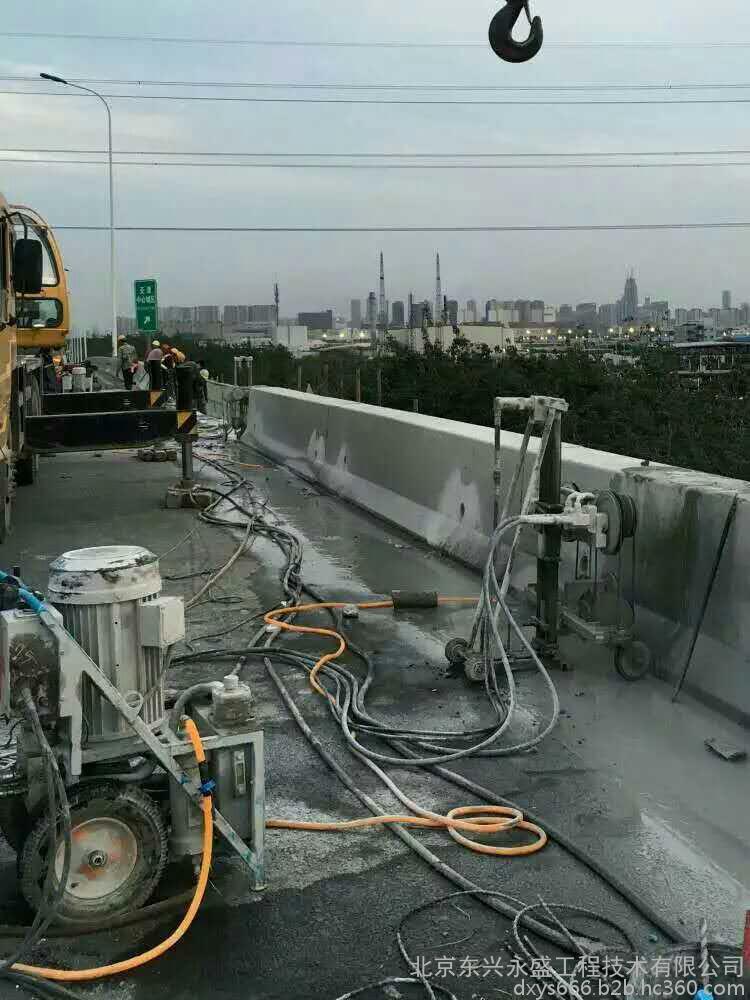 北京東興永盛工程技術有限公司擁有切割設備;金剛石繩鋸機6臺其中意大利進口的繩鋸機2臺,國產的繩鋸機4臺可獨立承接橋梁切割拆除工程、橋墩切割拆除工程、不規則的鋼筋混凝土建筑切割拆除工程、一米以上的圓裝飾柱切割拆除,基礎切割拆除、堤壩切割拆除工程等各種鋼筋混凝土切割拆除工程。